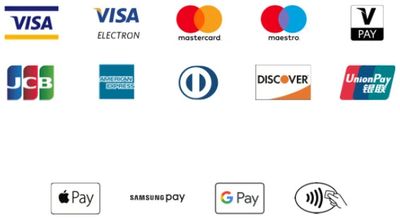 We accept checks, cash, Visa, Mastercard, Diners Club International, American Express, Discover, Apple Pay, and Google Pay